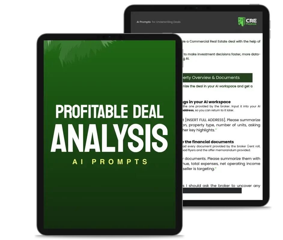 My custom AI prompts for CRE deal analysis that helped me build a $60M+ portfolio - so you can analyze properties in seconds, spot profitable deals, and make winning offers.