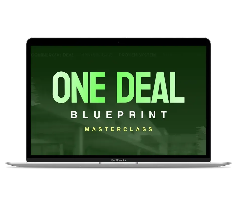 This is a special offer where you'll gain access to the One Deal Blueprint 60-Minute Masterclass plus 7 valuable bonuses, all designed to help you master commercial real estate and get your first deal under contract in 90 days.